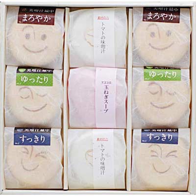 「美噌汁最中、トマトのお味噌、マゴコロ入り」セットです!!
